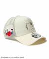 本コラボレーションのために描き起こされたニューエラキャップをかぶったハローキティ、ハローキティのアイコンでもあるリボンやりんごモチーフとニューエラロゴを組み合わせたデザインなど、コラボレーションならではのデザイン。