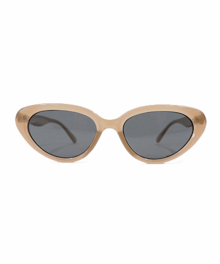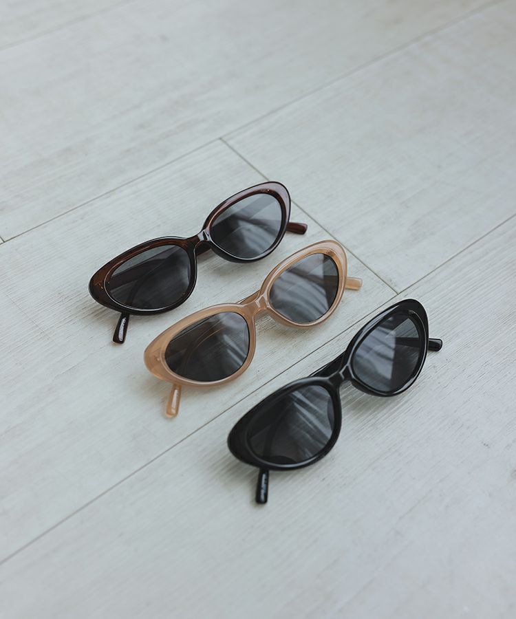 エッジの効いたキャットアイシルエットが、顔立ちをキュッと引き締め、クールな印象を演出するUVカットサングラス。