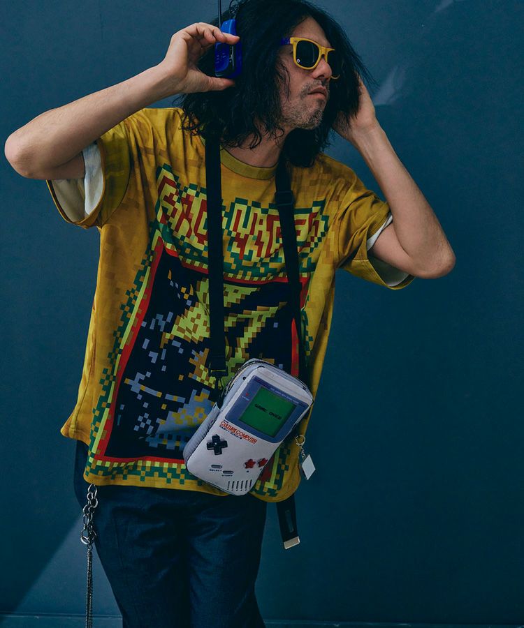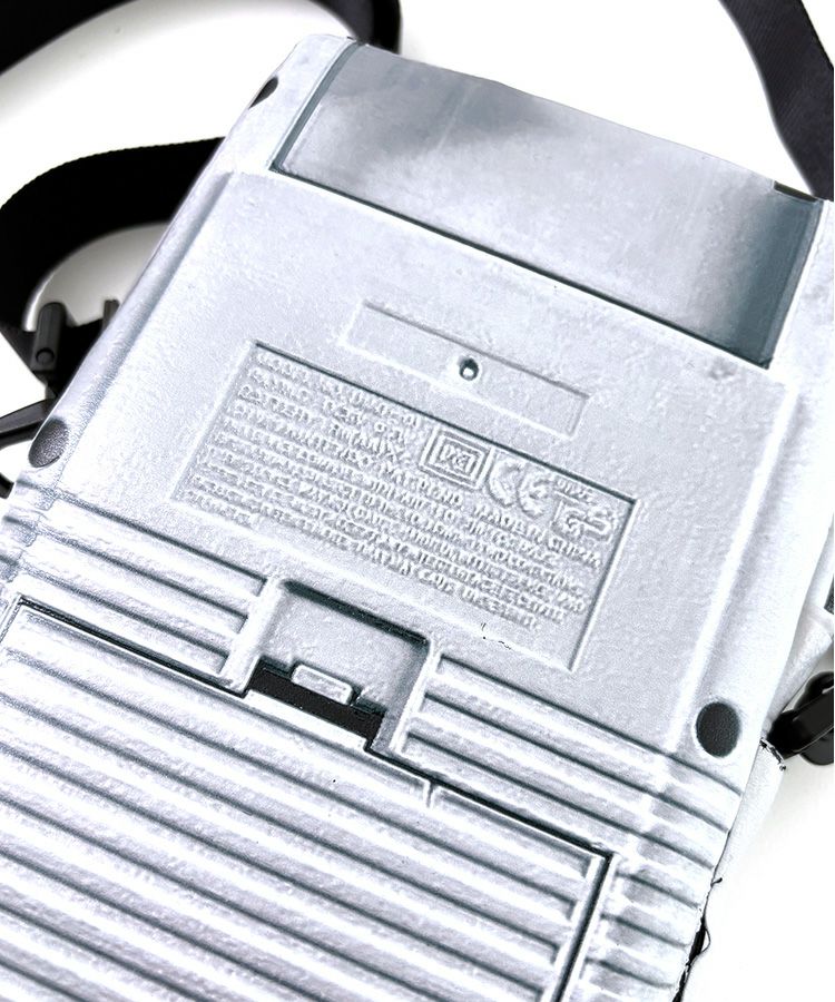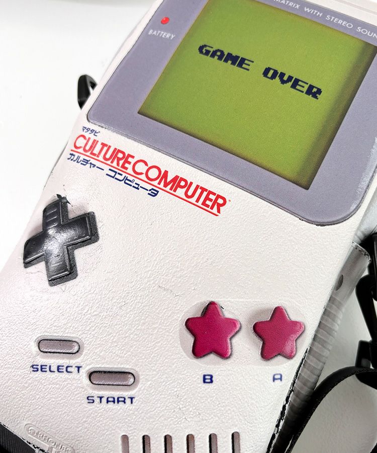 合成皮革に90年代に一世を風靡したゲーム機本体をプリントしたサコッシュ。