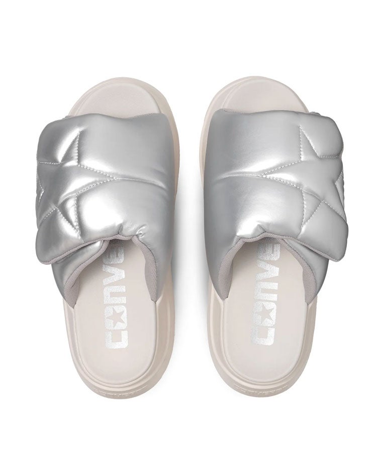 丸みを帯びた厚底アウトソールが特徴的な「チューイー」のスライドモデル。