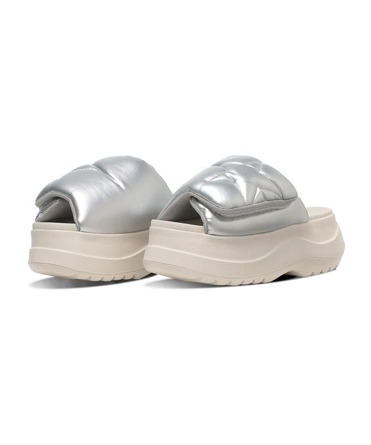 柔らかいPU素材のフットベッドとE.V.A.のアウトソールを採用し、履き心地を追求。 シルバー、ブラックの2カラー展開。