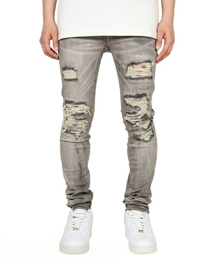 X284 MOTO SKINNY DENIM [I] / グレー×ブルー [25ML-SP113D]