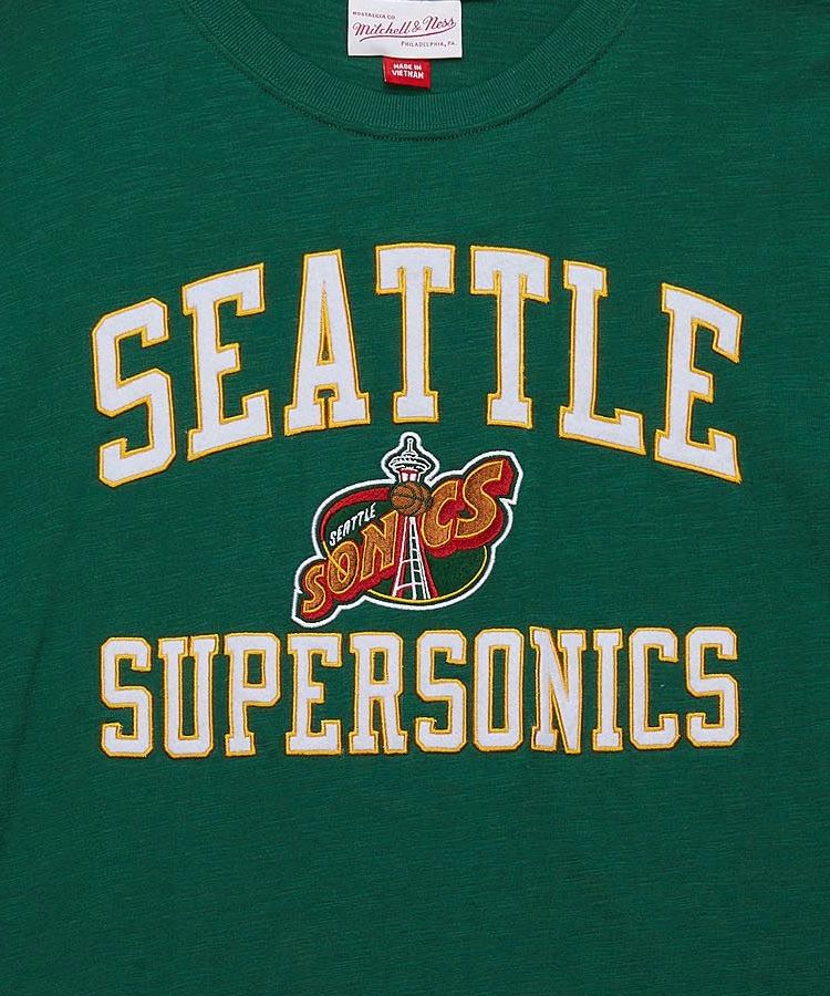 90年代に高い人気を誇った今はなきNBAチーム「Seattle Supersonics(シアトル・スーパーソニックス)」のヴィンテージロゴが落とし込まれたTシャツ。
