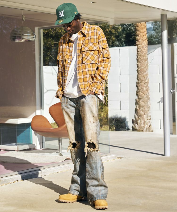 腿から膝までをやや細めに設計することで、裾口との内周差の強弱が生まれ、抜群のフレアシルエットを作り上げました。