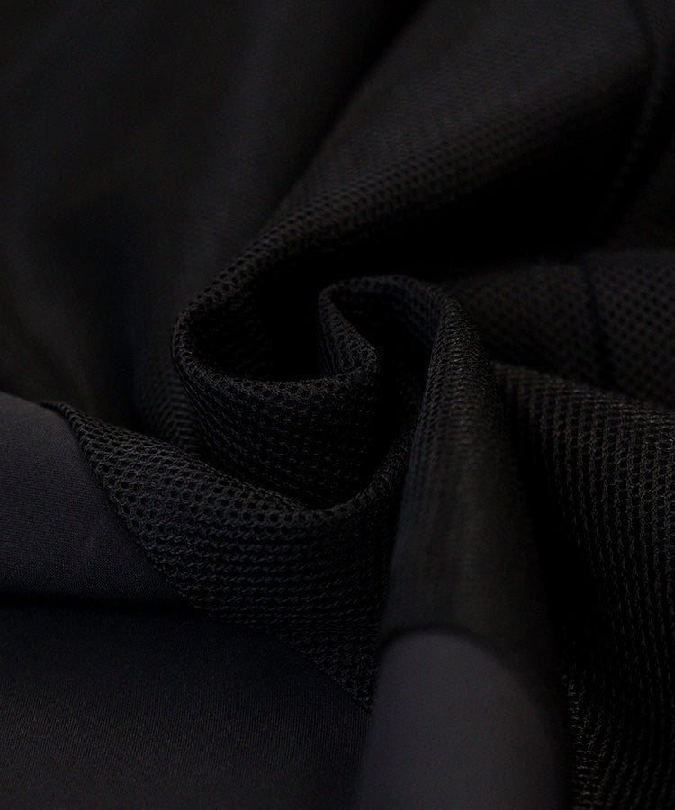 裏地には通気性に優れたメッシュ素材を採用し、長時間の着用でもムレにくく、さらりと快適。