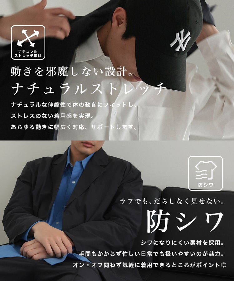 現代のビジネスシーンにおけるファッションのカジュアル化を背景に誕生した、オシャレでストレスフリーなビジネスウェアブランド。