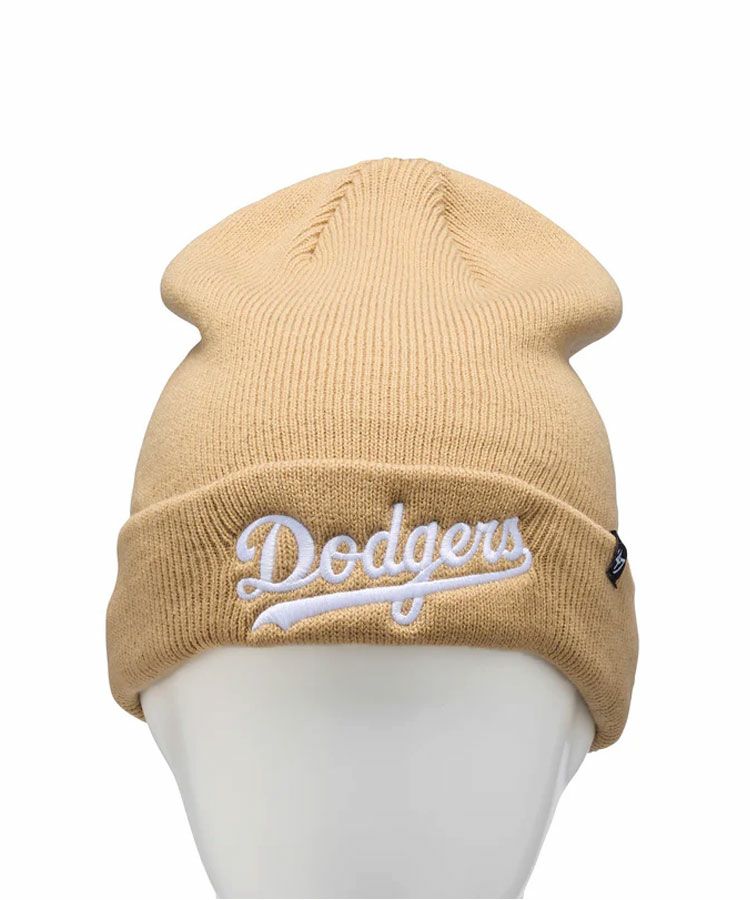 球団のワードマークをカフ部分配したニットキャップ。
