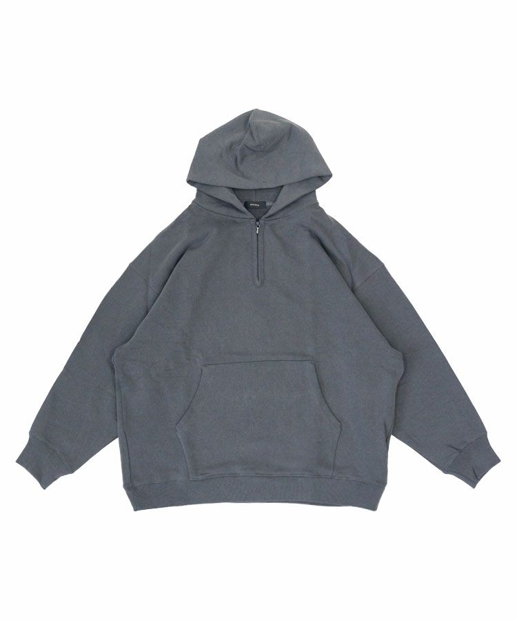 ほど良い厚さの上質なコットン裏毛スウェット生地を使用したハーフジップパーカ。