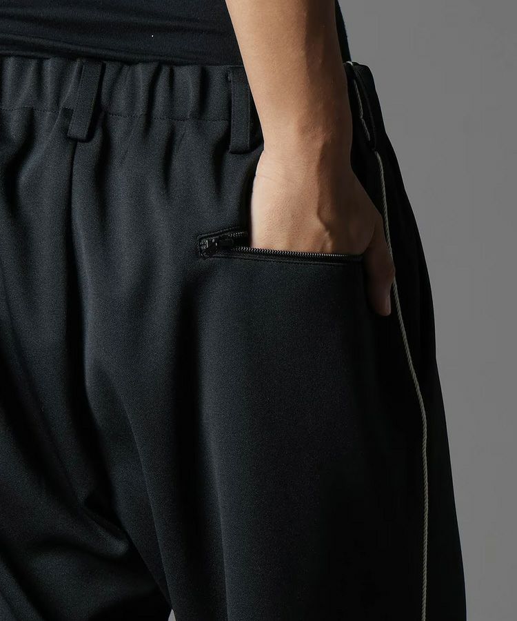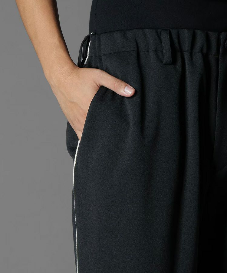 POLYESTER SMOOTH PIPING WIDE PANTS / ブラック [GP-P25-900-1]