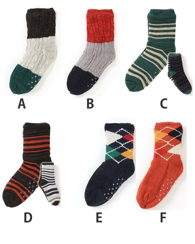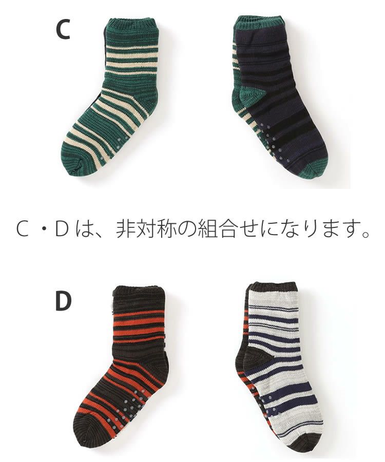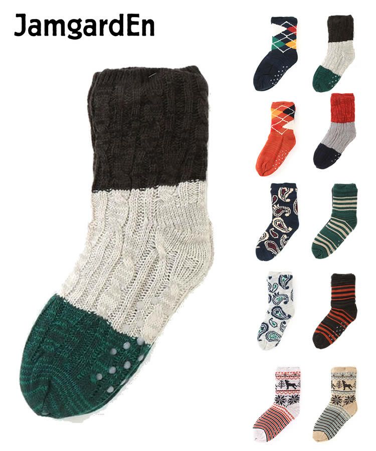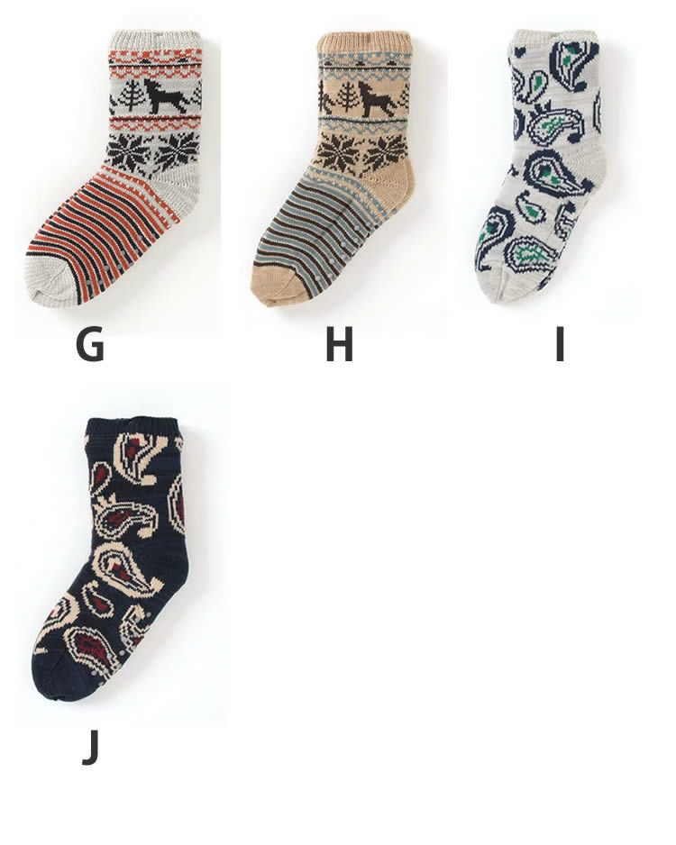 メンズ ルームソックス 裏ボア 靴下 ルームシューズ ボーダー ノルディック アーガイル ペイズリー Jamgarden(ジャムガーデン)