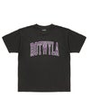 フロントにカレッジ調のグラフィックが掠れプリントで入っています。