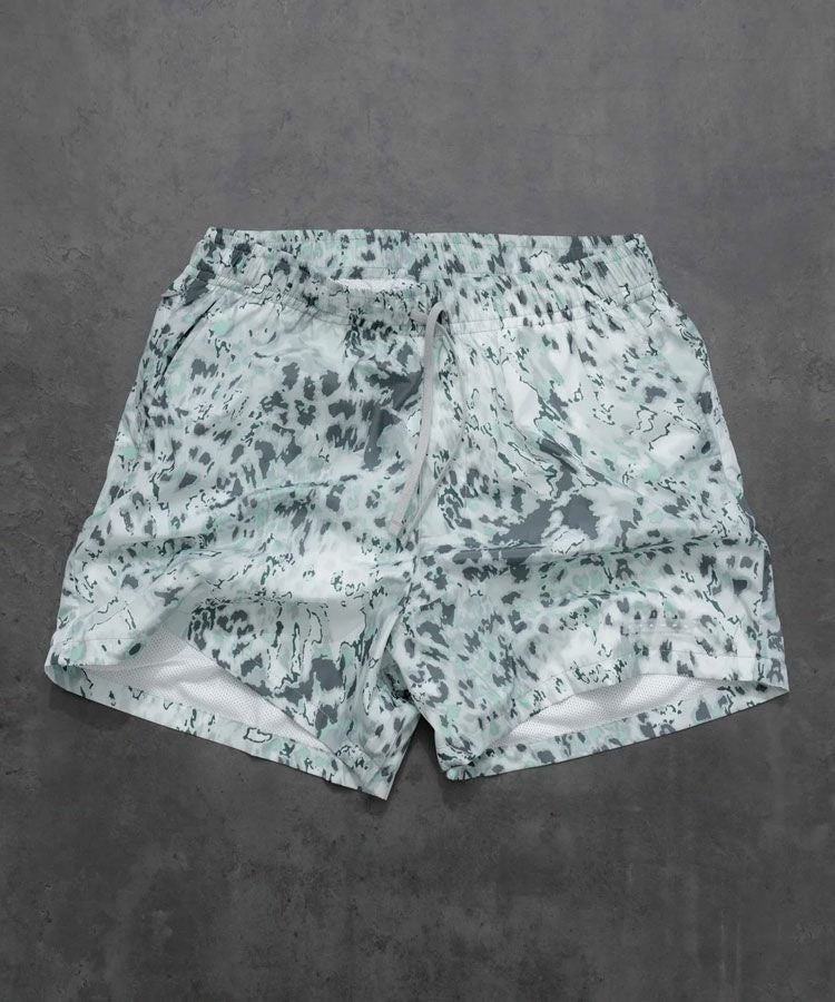 インパクト抜群のオールオーバーオーシャンレオパードデザイン、裾部のシリコンラベルが特徴的。